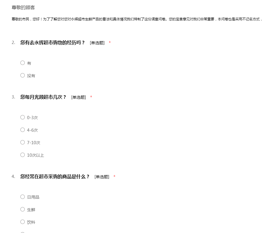 永辉超市客户问卷调查
