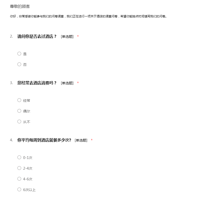 你好,非常感谢你能参与我们的问卷调查,我们正在进行一项关于酒店的调查问卷,希望你能抽点时间填写我们的问卷。