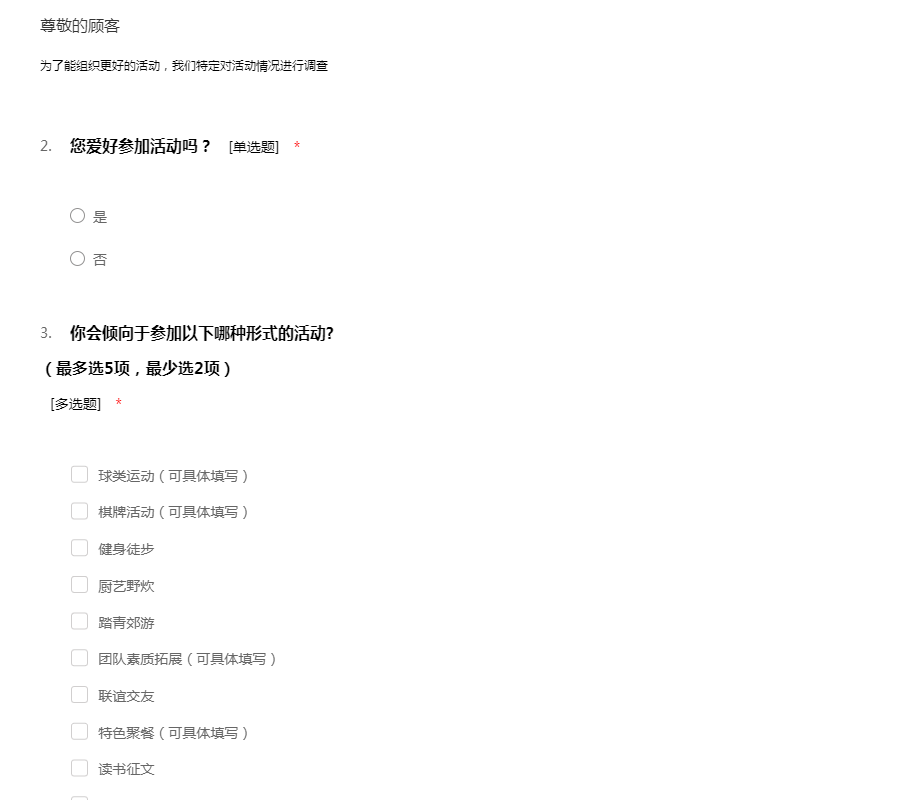 为了能组织更好的活动,我们特定对活动情况进行调查