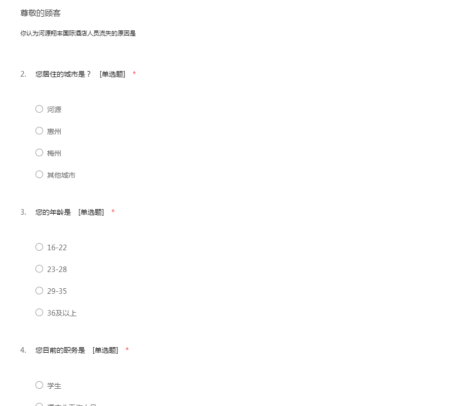 关于河源翔丰国际酒店人员流失与对策探讨的问卷调查