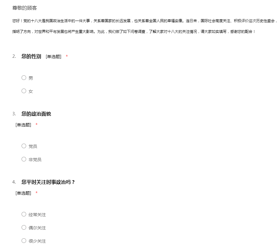 十八大的问卷调查