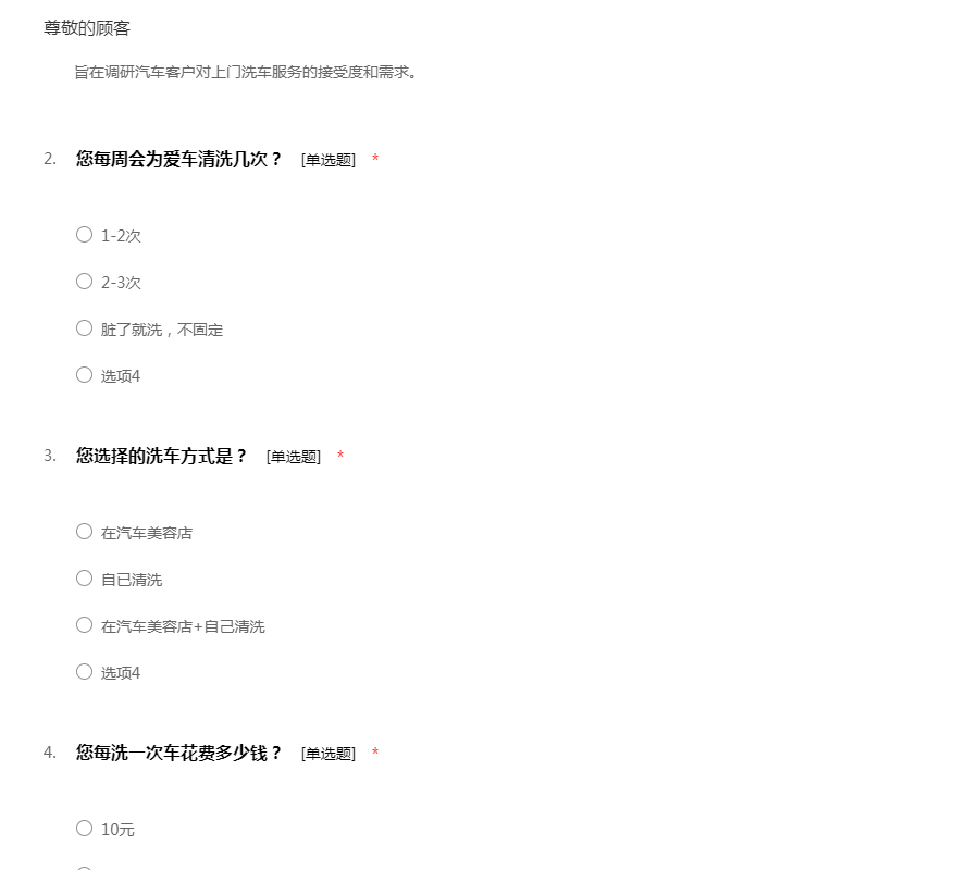 上门洗车服务问卷调查