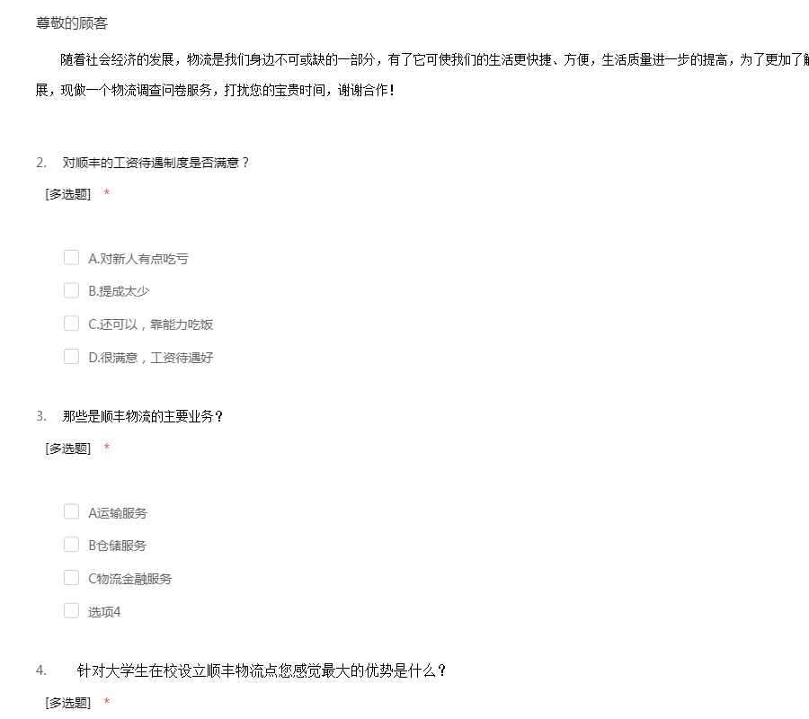 对顺丰快递服务的调查问卷