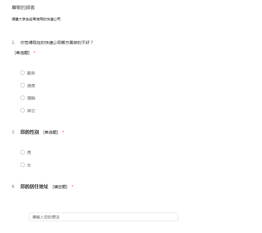 快递问卷之一