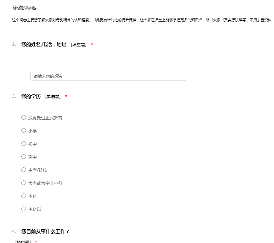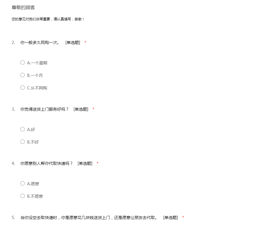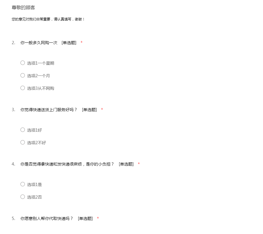 请按照真实情况,在符合您意见的选项处画“√”;除了特别注明,只需选择一个选项。