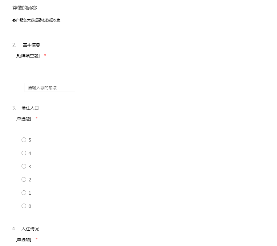 业主基本信息收集问卷