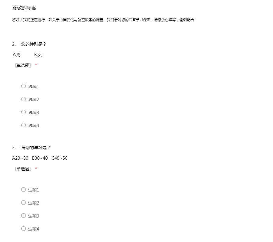 您好!我们正在进行一项关于中国民俗与航空服务的调查,我们会对您的回答予以保密,请您放心填写,谢谢配合!