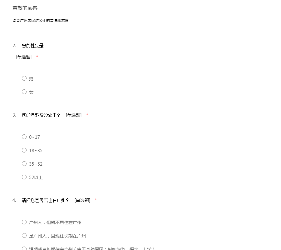 调查广州居民对公正的看法和态度