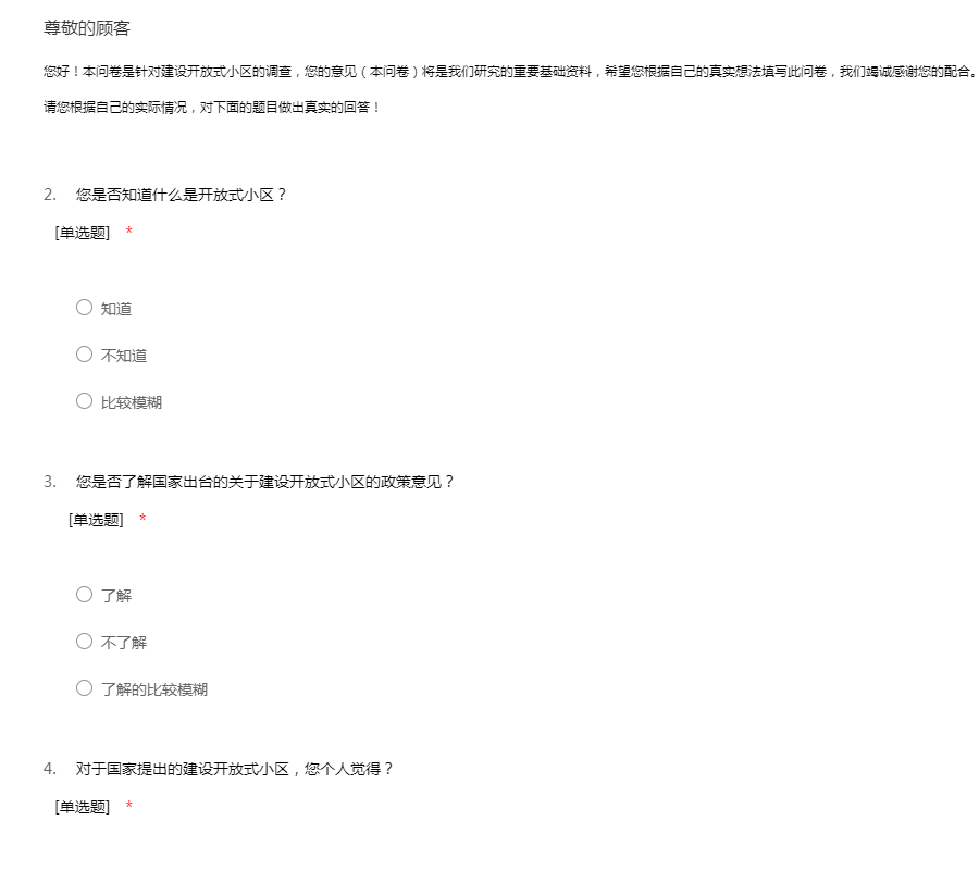 建设开放式小区的调查问卷