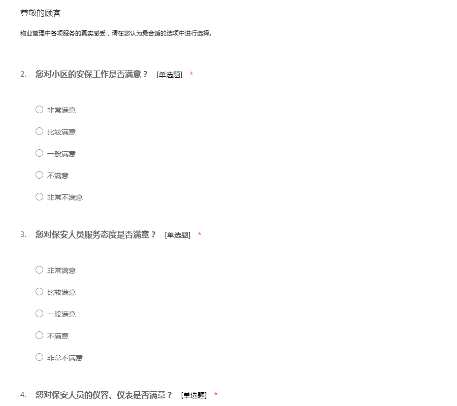 物业满意度调查问卷