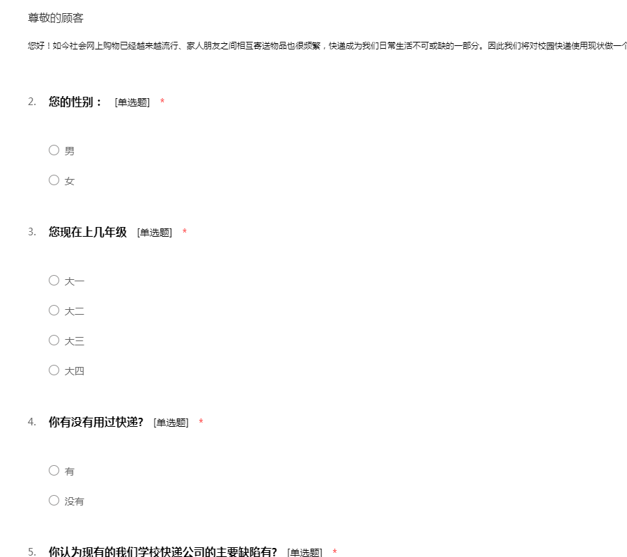快递市场调查问卷