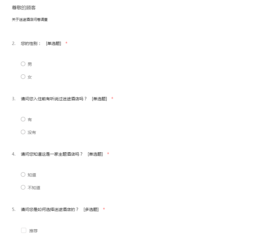 迷途酒店调查问卷