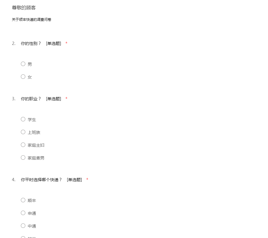顺丰快递的问卷调查