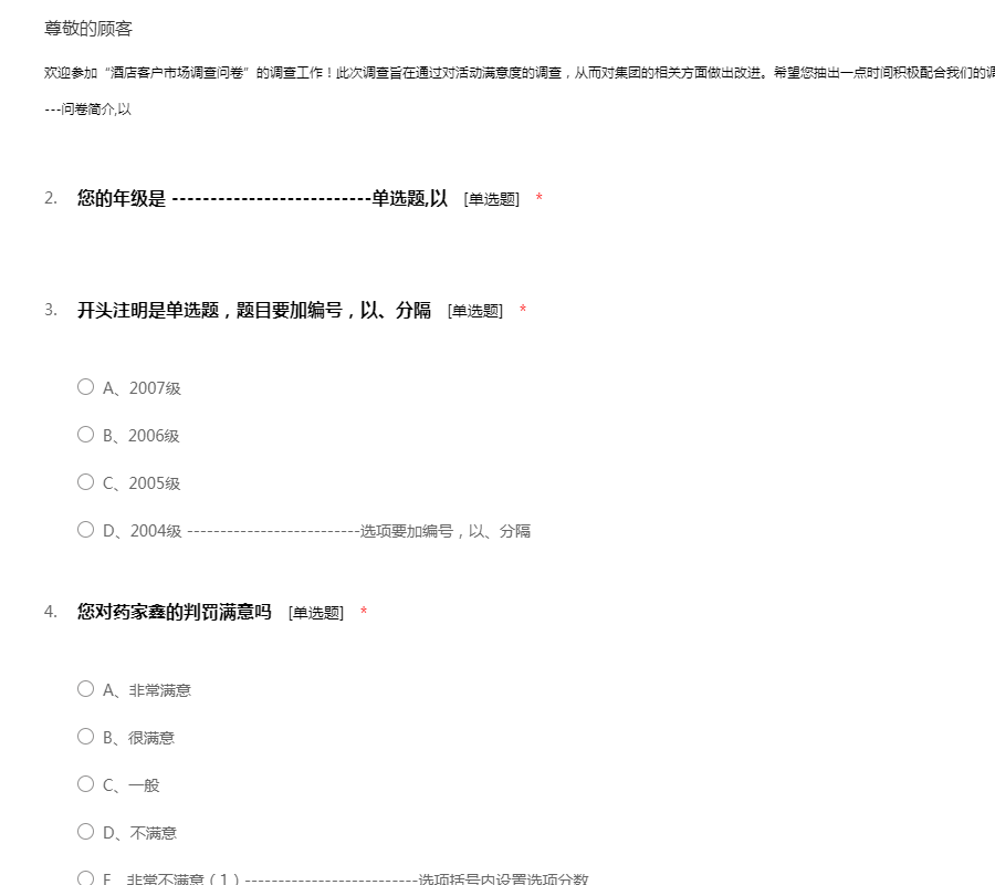 欢迎参加“酒店客户市场调查问卷”的调查工作!此次调查旨在通过对活动满意度的调查,从而对集团的相关方面做出改进。希望您抽出一点时间积极配合我们的调查工作,谢谢您的参与。--------------------------问卷简介,以