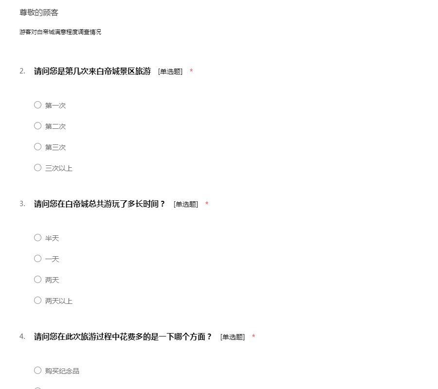 白帝城游客满意度调查