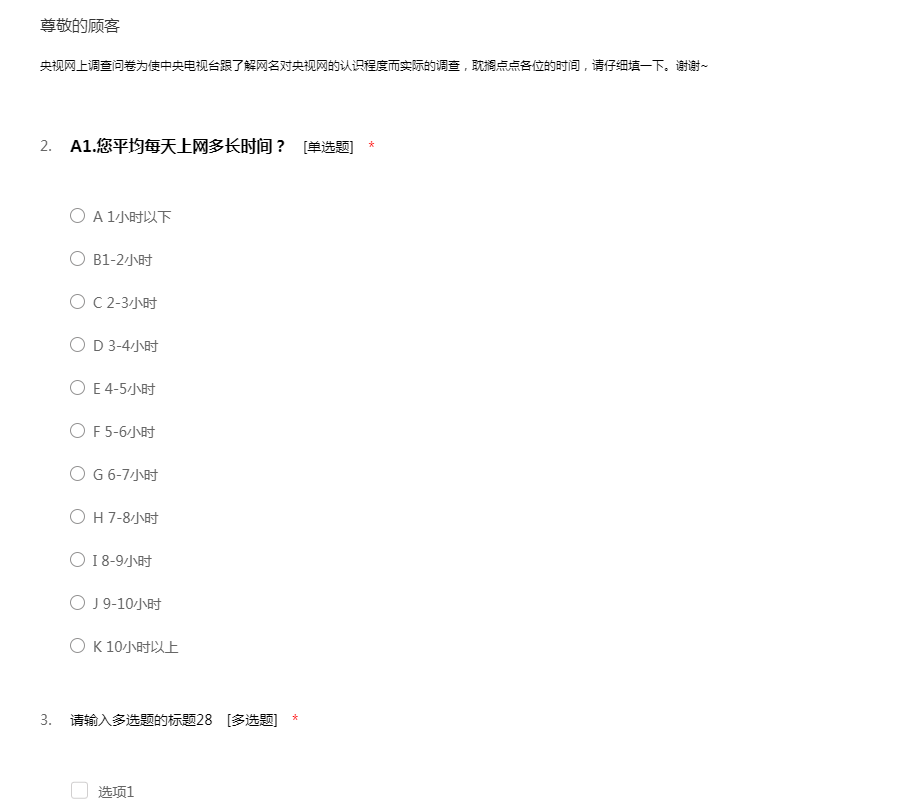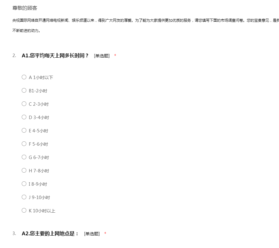 央视网上调查问卷为使中央电视台跟了解网名对央视网的认识程度而实际的调查,耽搁点点各位的时间,请仔细填一下。谢谢~