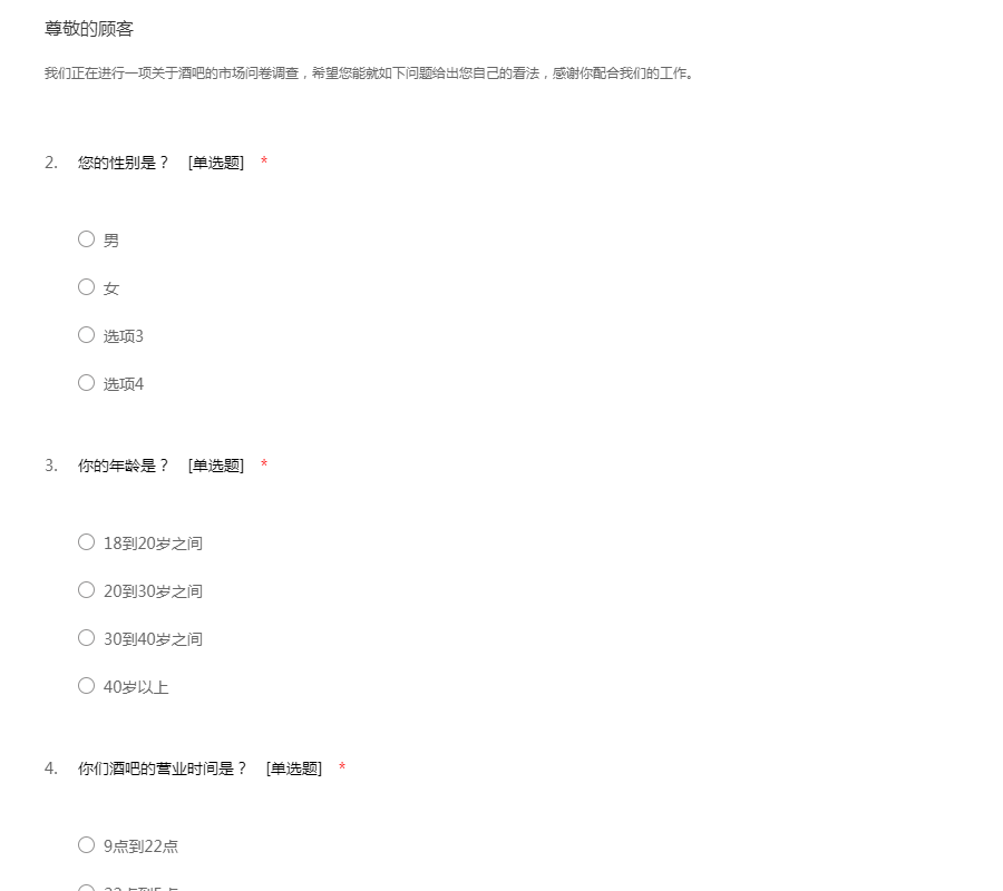 酒吧的调查问卷