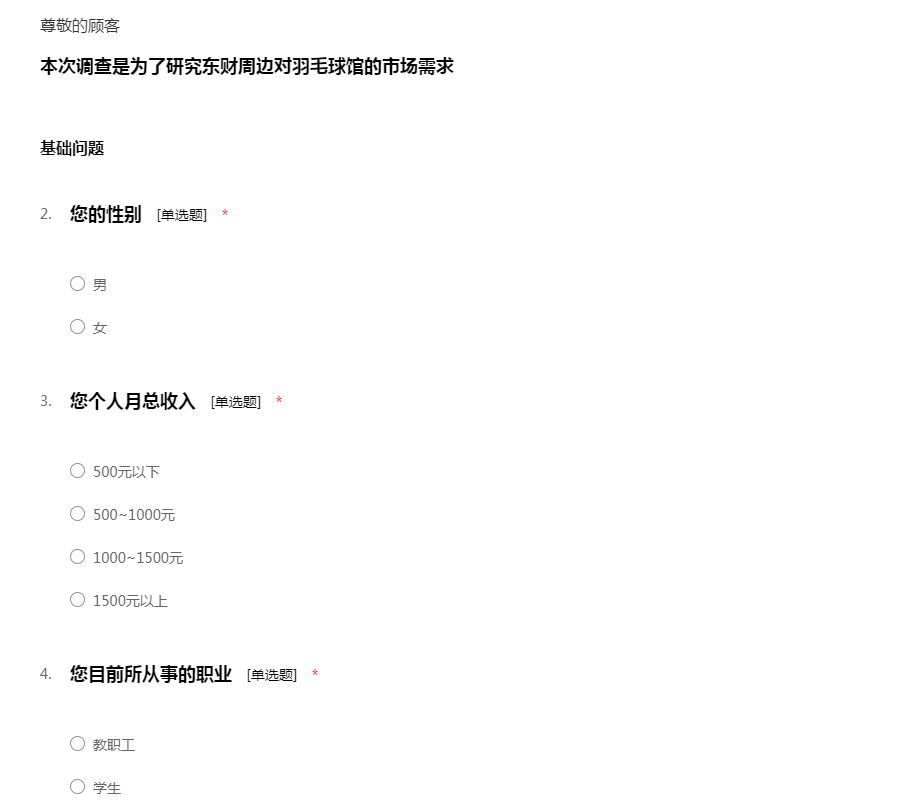 本次调查是为了研究东财周边对羽毛球馆的市场需求