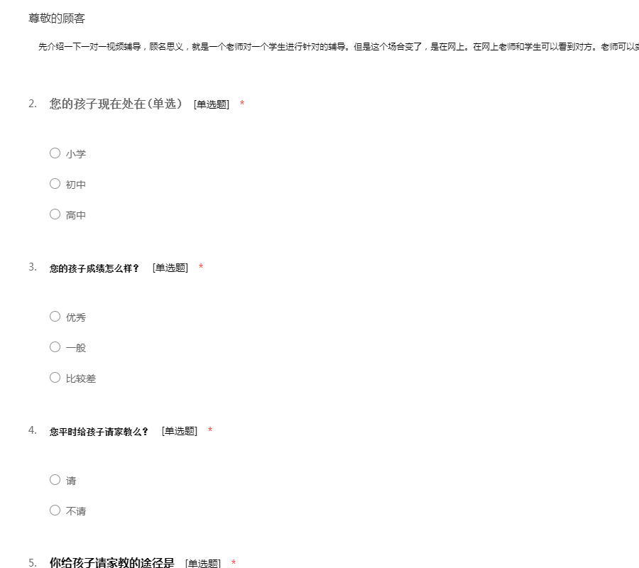 关于一对一网络视频辅导的调查