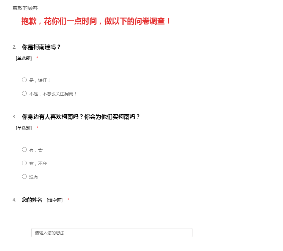 抱歉,花你们一点时间,做以下的问卷调查!