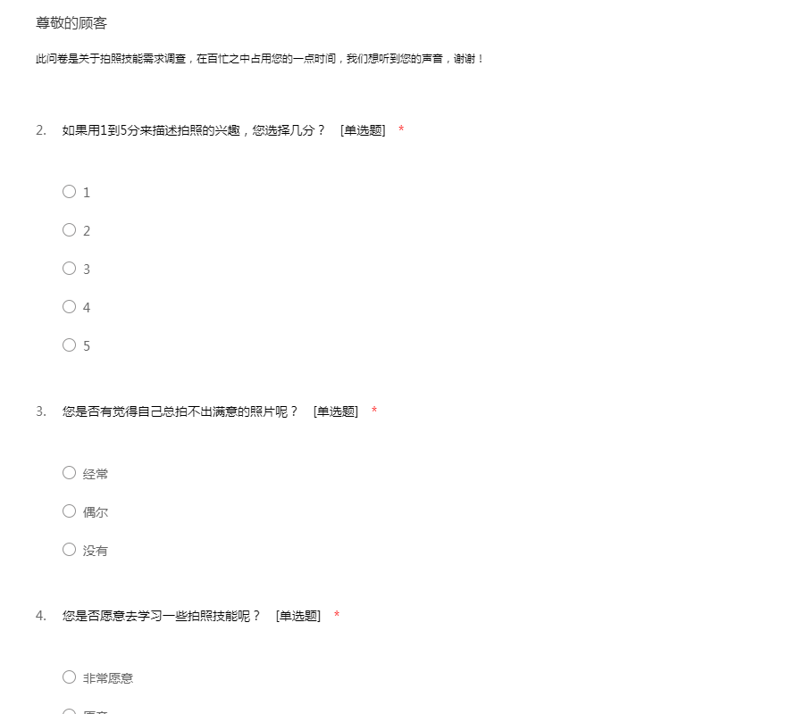 关于摄影,耽误您一些宝贵时间,回答摄影市场调查问卷调查问卷,谢谢您的合作。