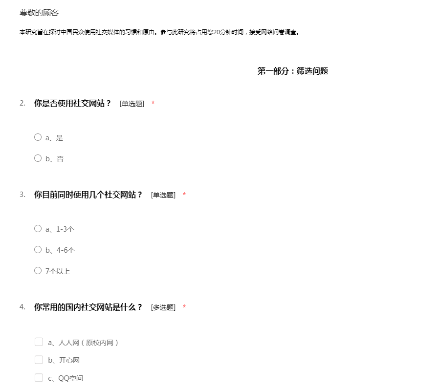 本研究旨在探讨中国民众使用社交媒体的习惯和原由。参与此研究将占用您20分钟时间,接受网络问卷调查。