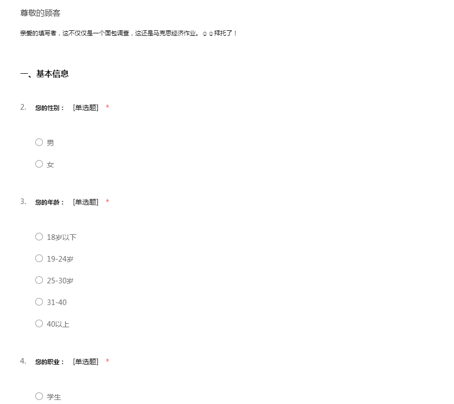 亲爱的填写者,这不仅仅是一个面包调查,这还是马克思经济作业。☺☺拜托了!