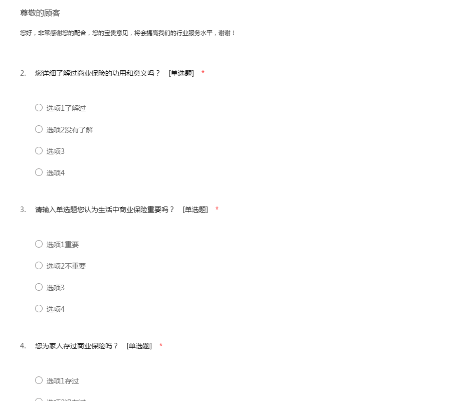 商业保险调查问卷