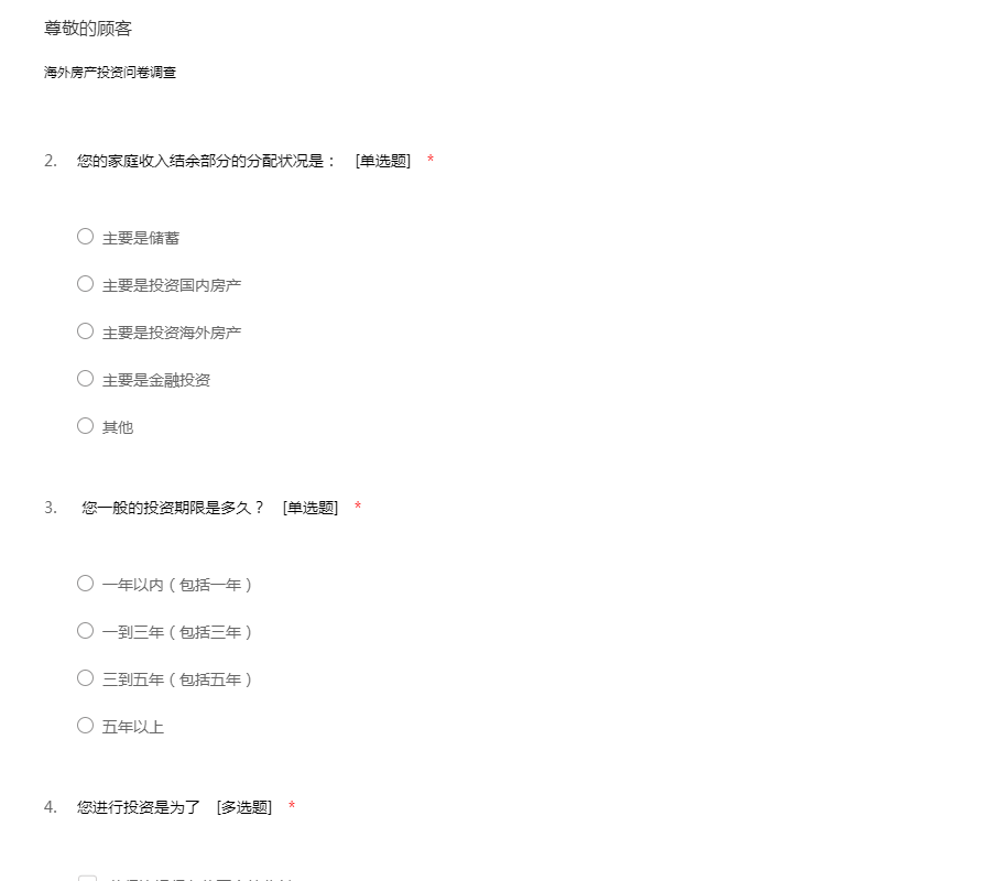 海外房产投资问卷调查