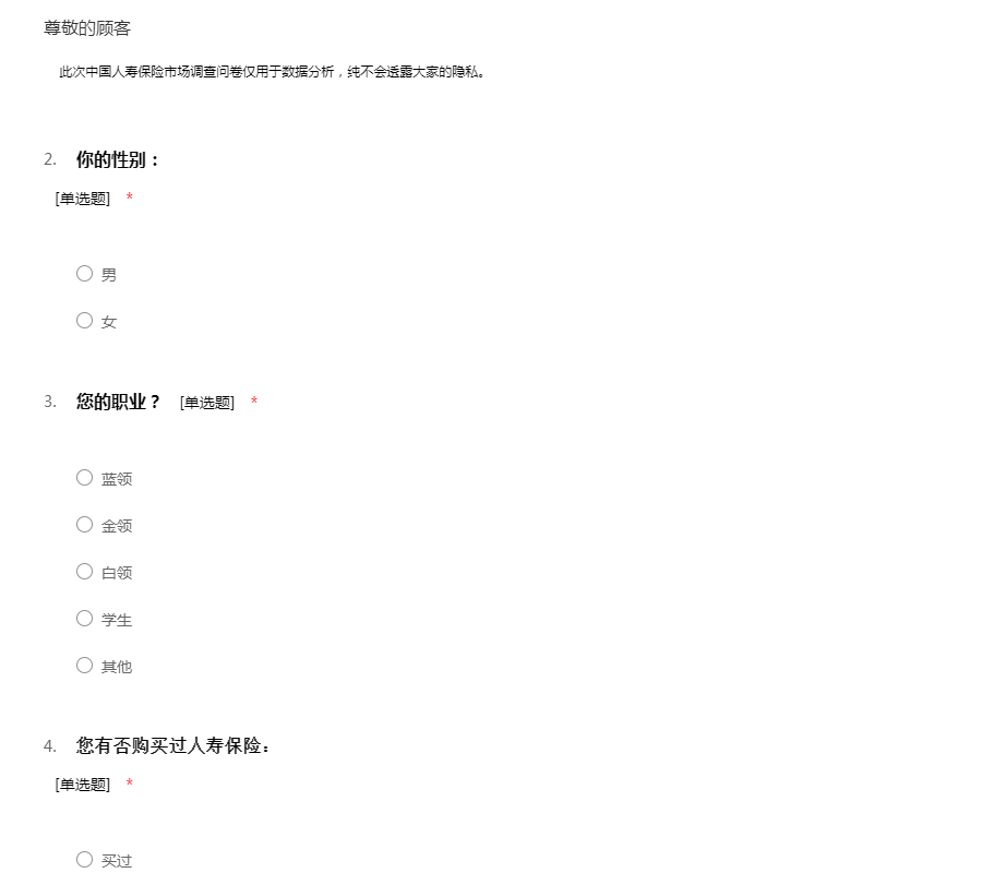 此次中国人寿保险市场调查问卷仅用于数据分析,纯不会透露大家的隐私。