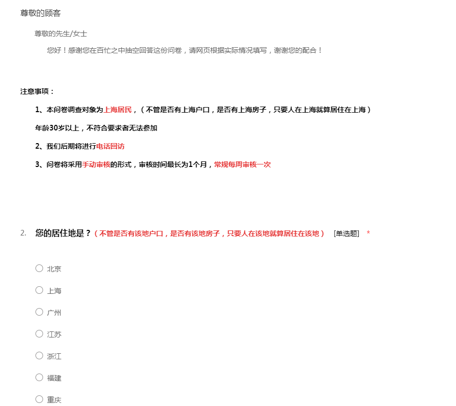 尊敬的先生/女士 您好!感谢您在百忙之中抽空回答这份问卷,请网页根据实际情况填写,谢谢您的配合!