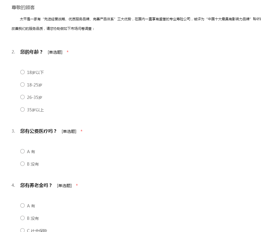 平安寿险问卷调查