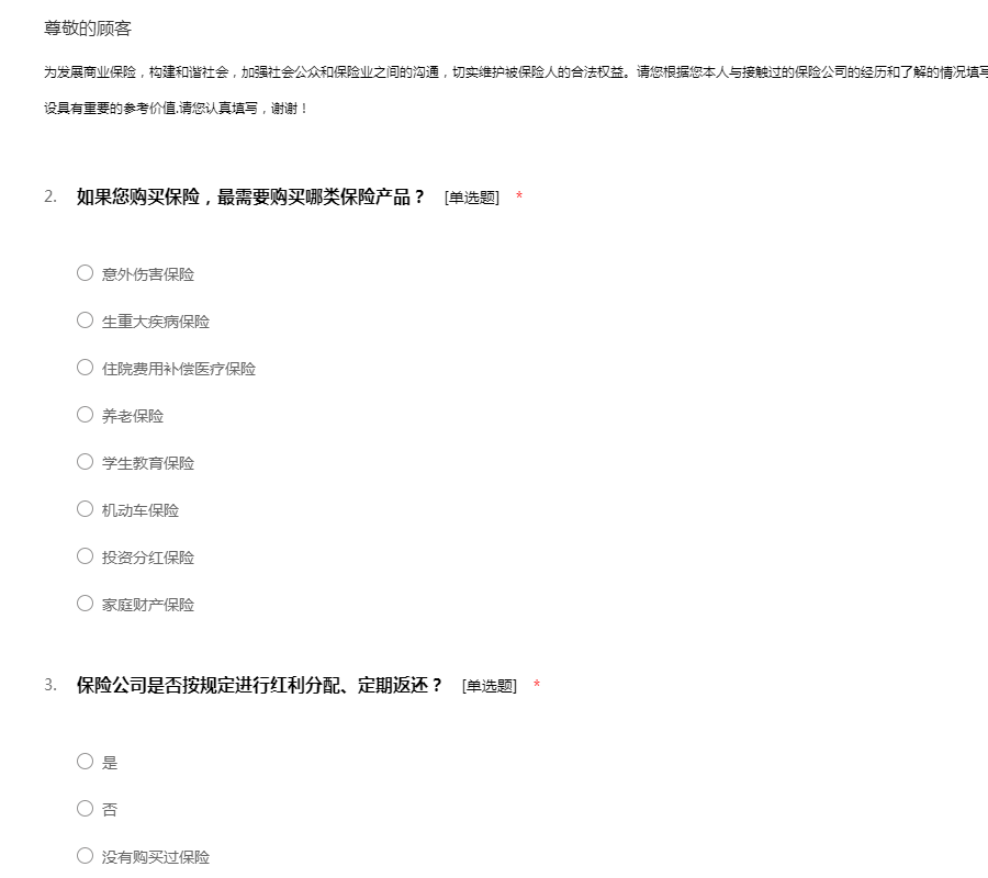 保险调查问卷