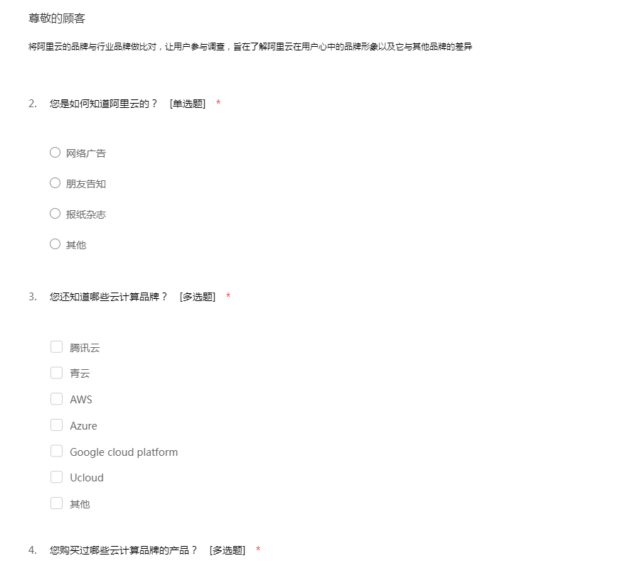 关于阿里云品牌建设的调查问卷