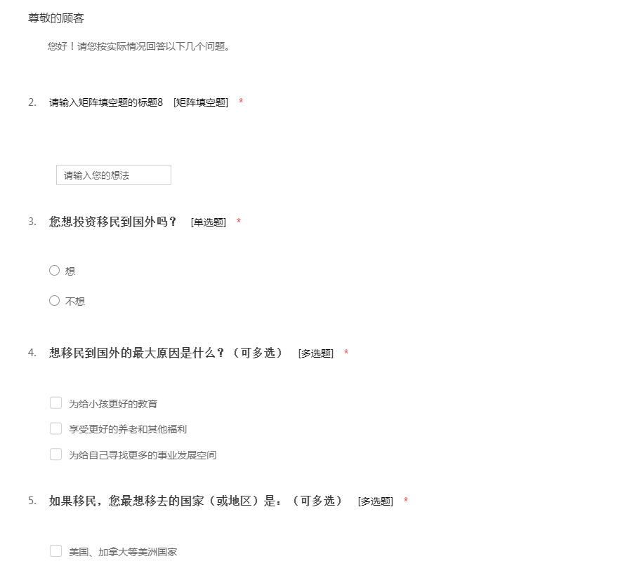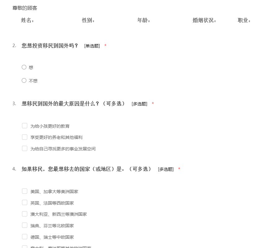 投资移民调查表