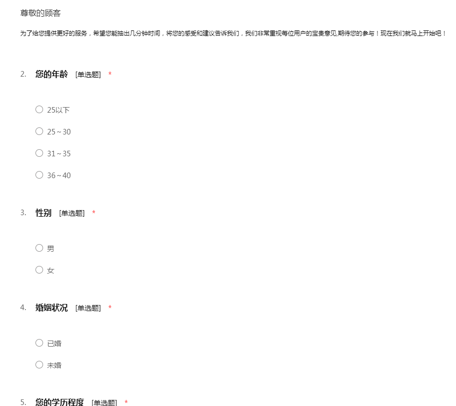 为了更好的为您提供服务,请真实认真的填写以下问卷: