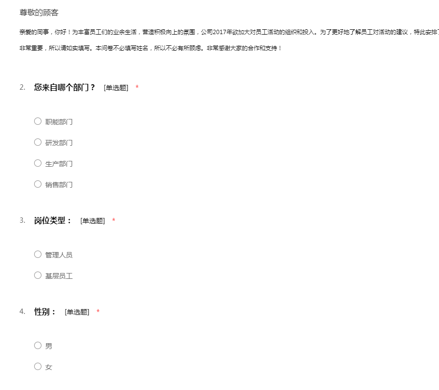 东方齐源小镇工会活动调查问卷