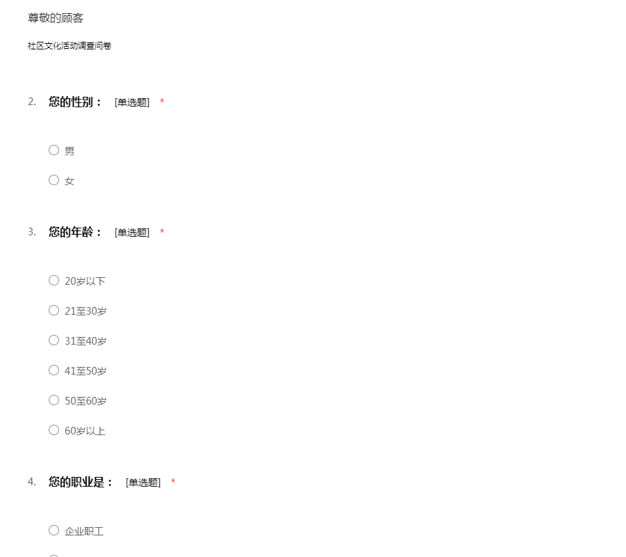 社区文化活动调查问卷
