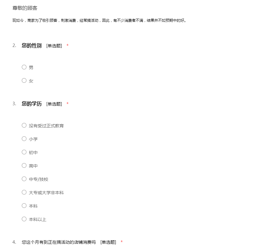 您好,耽误您几分钟时间,很感谢您能在百忙之中接受我们的调查,此次调查是关于百货大楼销售活动调查问卷,很感谢您的支持与理解回答下面的几个问题