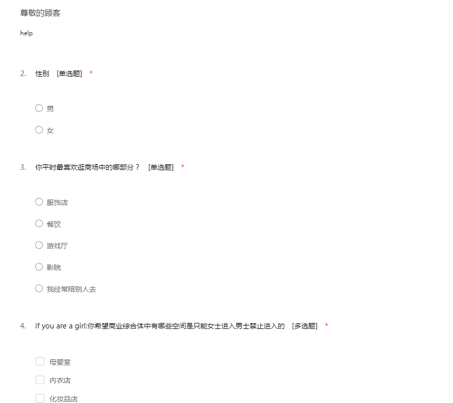 商业综合体性别空间区分问卷