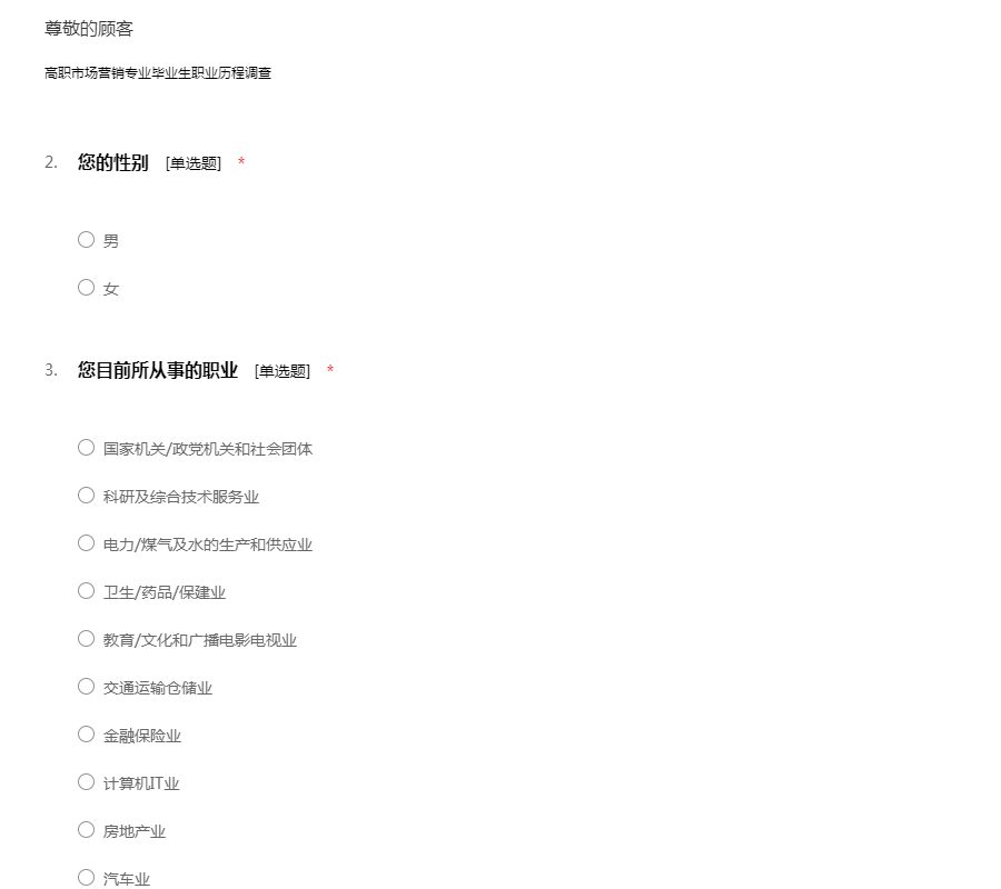 高职市场营销专业毕业生职业历程调查表