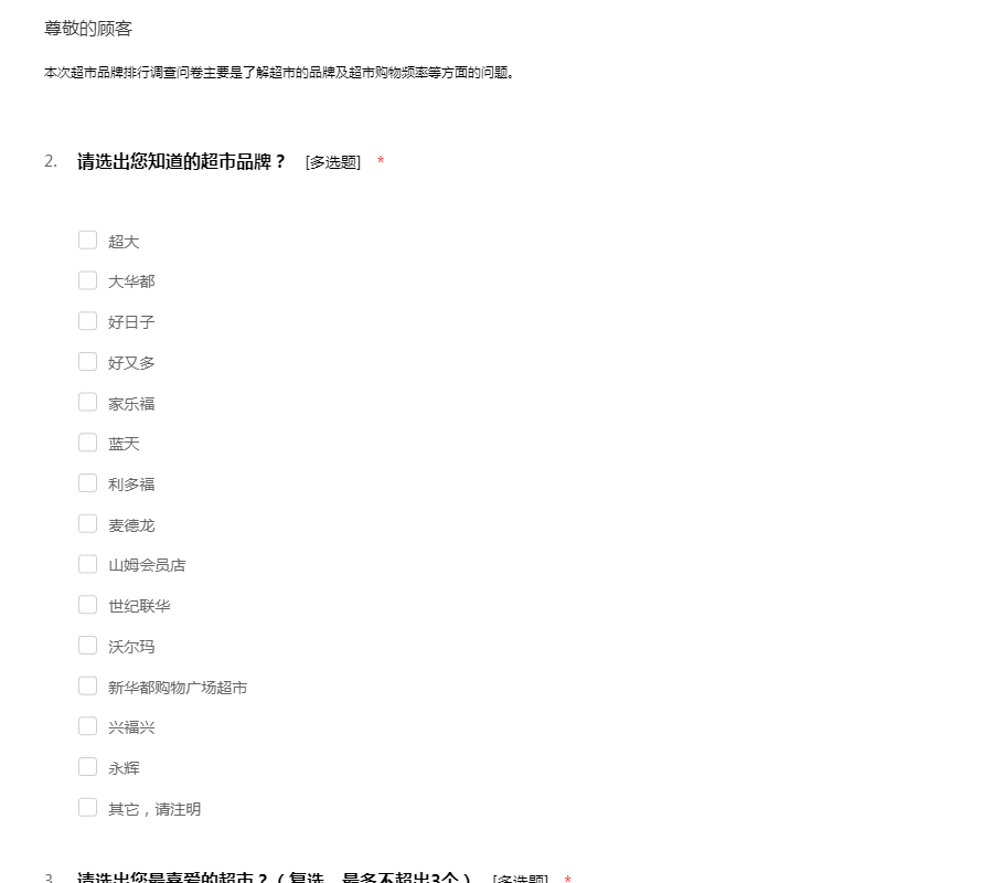 本次超市品牌排行调查问卷主要是了解超市的品牌及超市购物频率等方面的问题。
