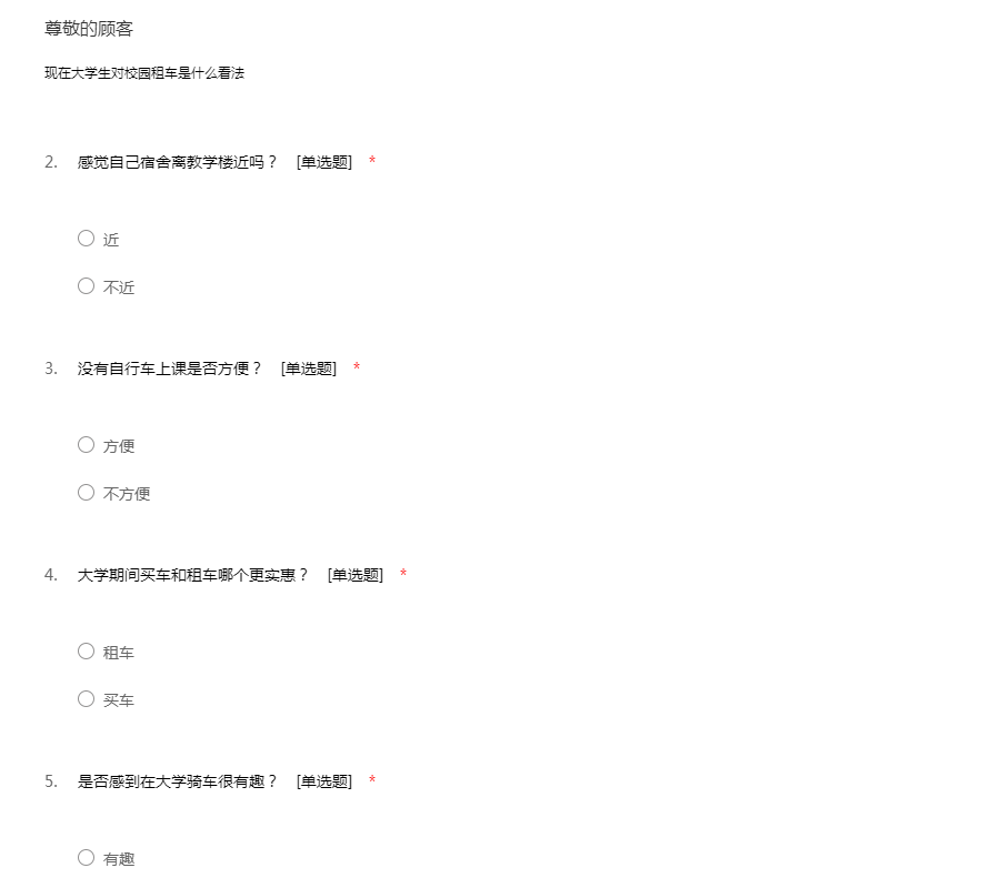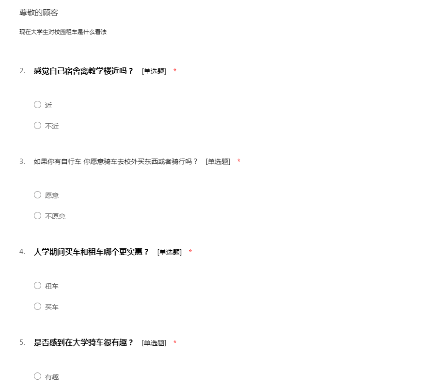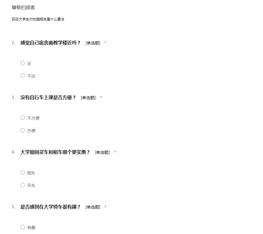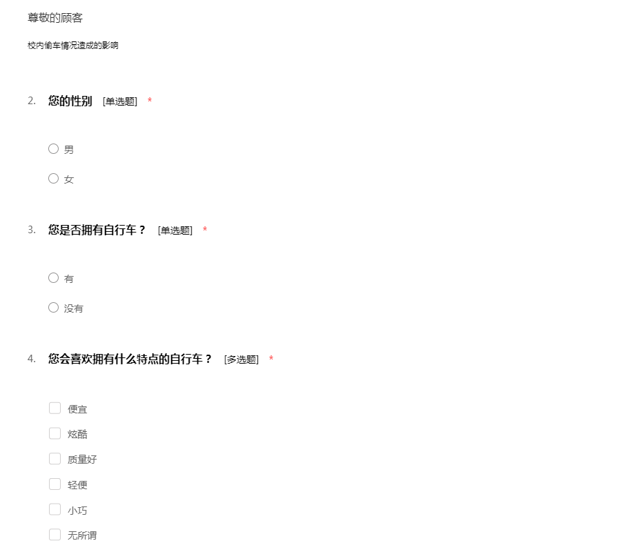 广州大学自行车调查问卷