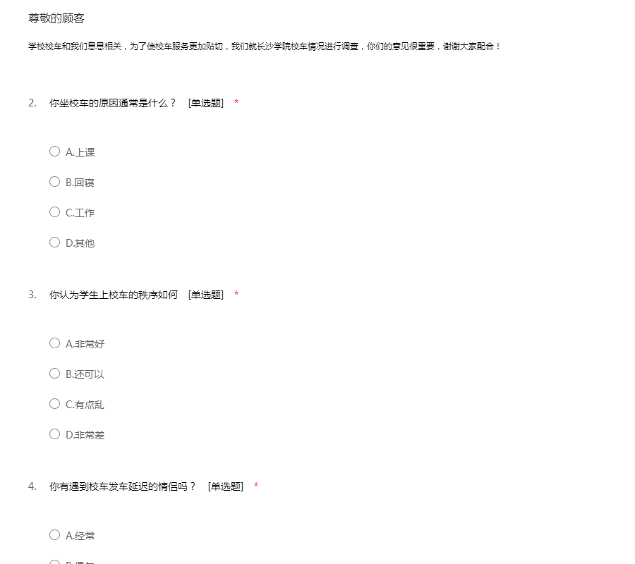 关于长沙学院校车情况调查问卷