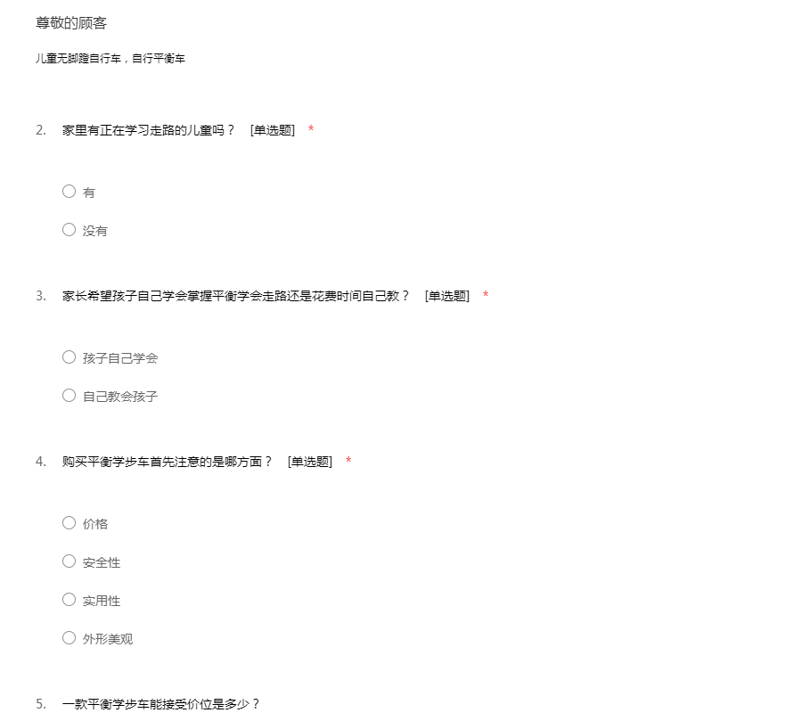 儿童平衡学步车意见收集
