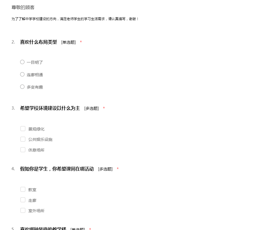 为了了解中学学校建设的方向,满足老师学生的学习生活需求,请认真填写,谢谢!