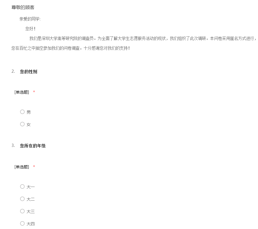 大学生课余时间安排调查亲爱的同学们:你好!大学生活主张自主学习,合理的安排时间有助于丰富我们的校园生活,增强自身修养。为了了解大学生对于学习和课余活动安排情况以及其人生观价值观、兴趣爱好、精神修养等各方面情况,让大学生更深刻的认识到大学生活合理规划的重要性。所以我们特在此以不记名方式进行问卷调查,希望您认真填 1:你的性别:()单选题A:男B:女2:你所就读的年级()单选题A:大一B:大二C:大三D:大四3:你觉得自己的课余时间安排是否合理?()单选题A:不合理B:一般C:合理5:你平时的课余活动是()多选A:学习B:参加社团活动C: 上网D:做兼职E:和男/女朋友约会F:和朋友聚会G:睡觉H:看课外书J:运动6:下面哪项占用你课余时间的比重重大()多选A:学习B:做兼职C:参加社团活动D:约会E:其他7:你对于课余时间的安排是出于什么角度?()单选A:促进学习B:充实生活C:锻炼生活D:其他8:你一般起床时间为()单选A:7点以前B:7点到8点C:8点到9点D:9点后9:你认为大学生是否应该多把闲暇时间花在学习上()单选A:适当部分用来学习,不宜过多B:不应该,应多用于其他安排C:应该多花时间在学习上,多学点知识D:无所谓10:你平时每天学习时间为()单选A:1个小时以下B:1到3个小时C:3到5个小时D:5个小时以上11:你对于课余时间安排态度是()单选A:认真安排,做好规划B:稍作安排C:不安排D:无所谓12:你的学习时间和课余时间冲突时,你的做法时()单选A:一切以学习为重,放弃其他活动B:逃课做自己喜欢做的事C:看心情13:你一个星期参加学校或班级活动的时间为()单选A:2个小时以下B:2到4小时C:4到6小时D:6小时以上14:对于学校社团活动安排的观点()单选A:觉得无聊,从不参加B:偶尔感兴趣参加一两次C:有较大热情,积极参加D:其他15:你每天上网时间()单选A:2个小时B:2到4个小时C:4到6小时D:一整天
