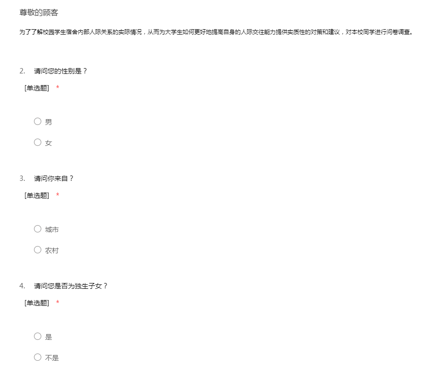 大学生寝室关系问卷调查