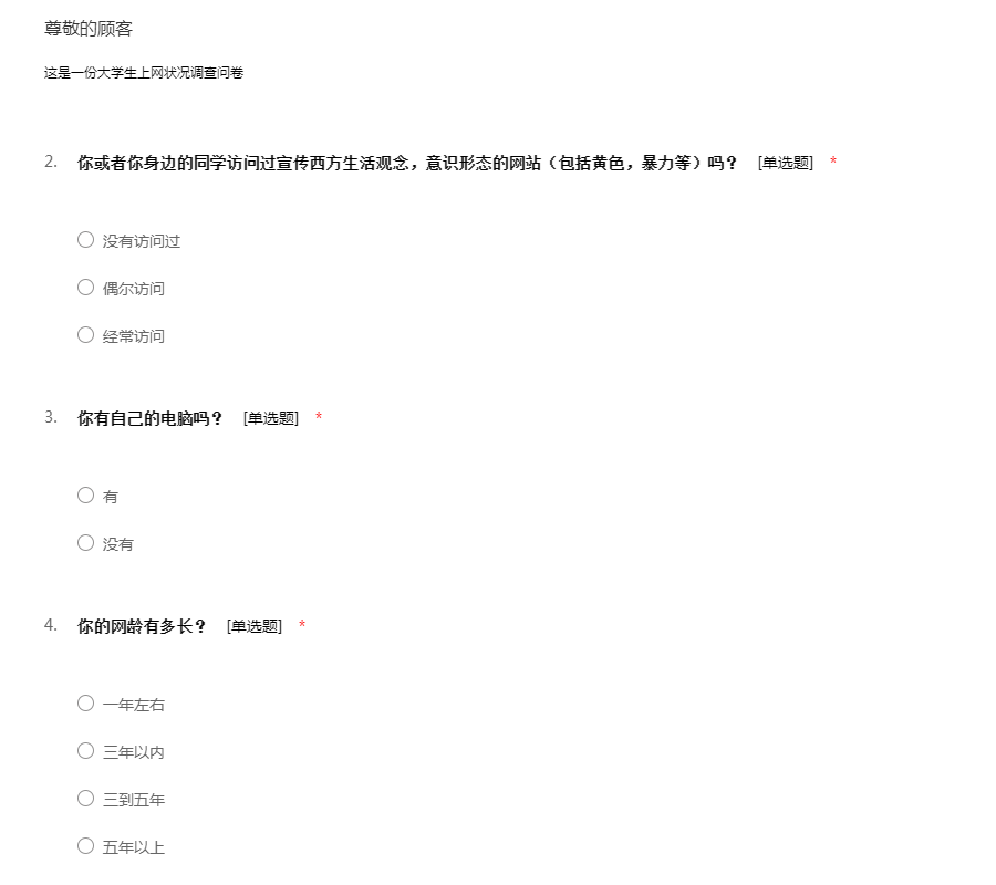 这是一份大学生上网状况调查问卷