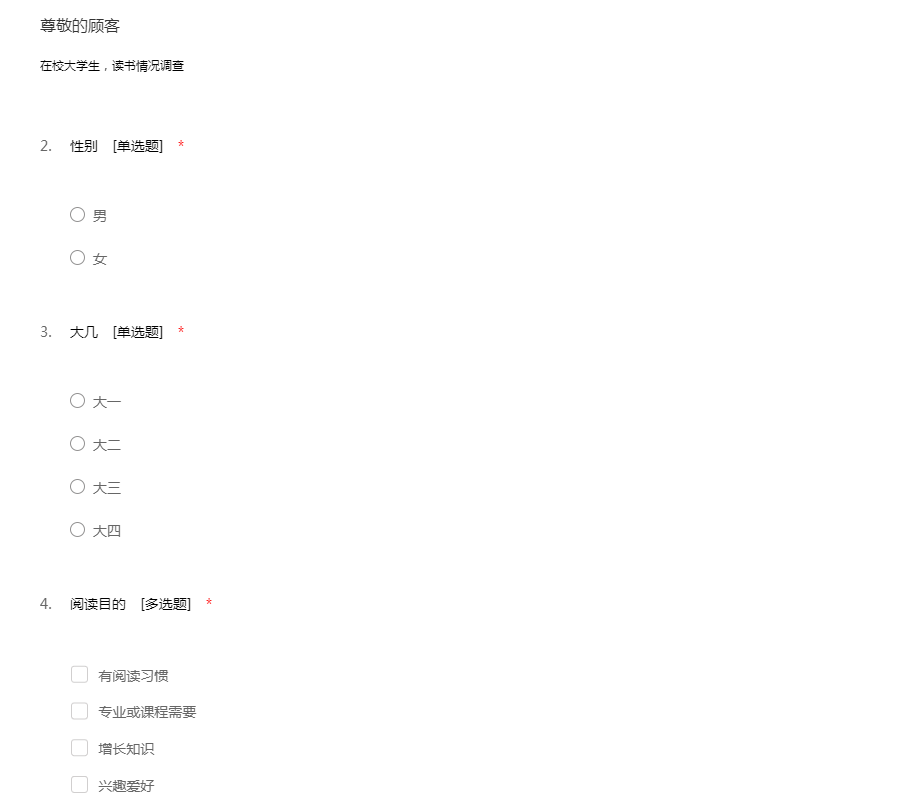 在校大学生读书情况调查问卷